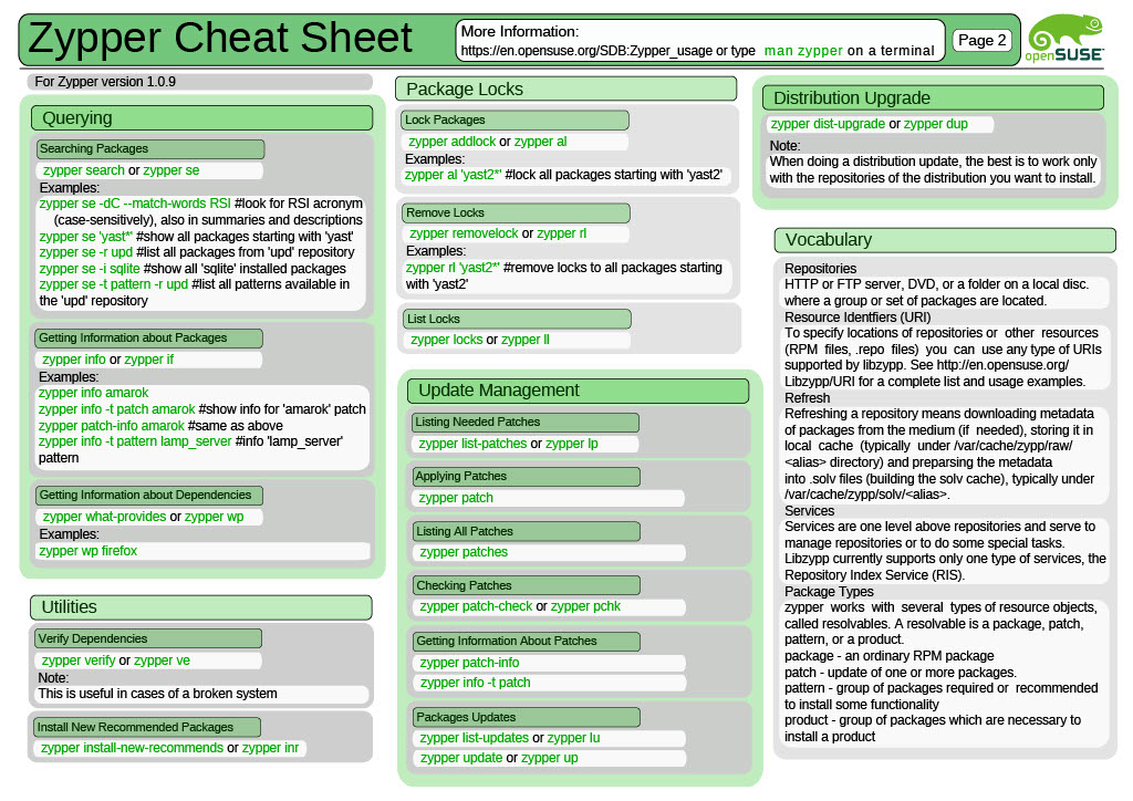 Be warned that this page is partially outdated! For a more up-to-date yet less complete version: here and more details there. This article is about how to use Zypper, the command line package manager using the Libzypp library for installing, updating and r